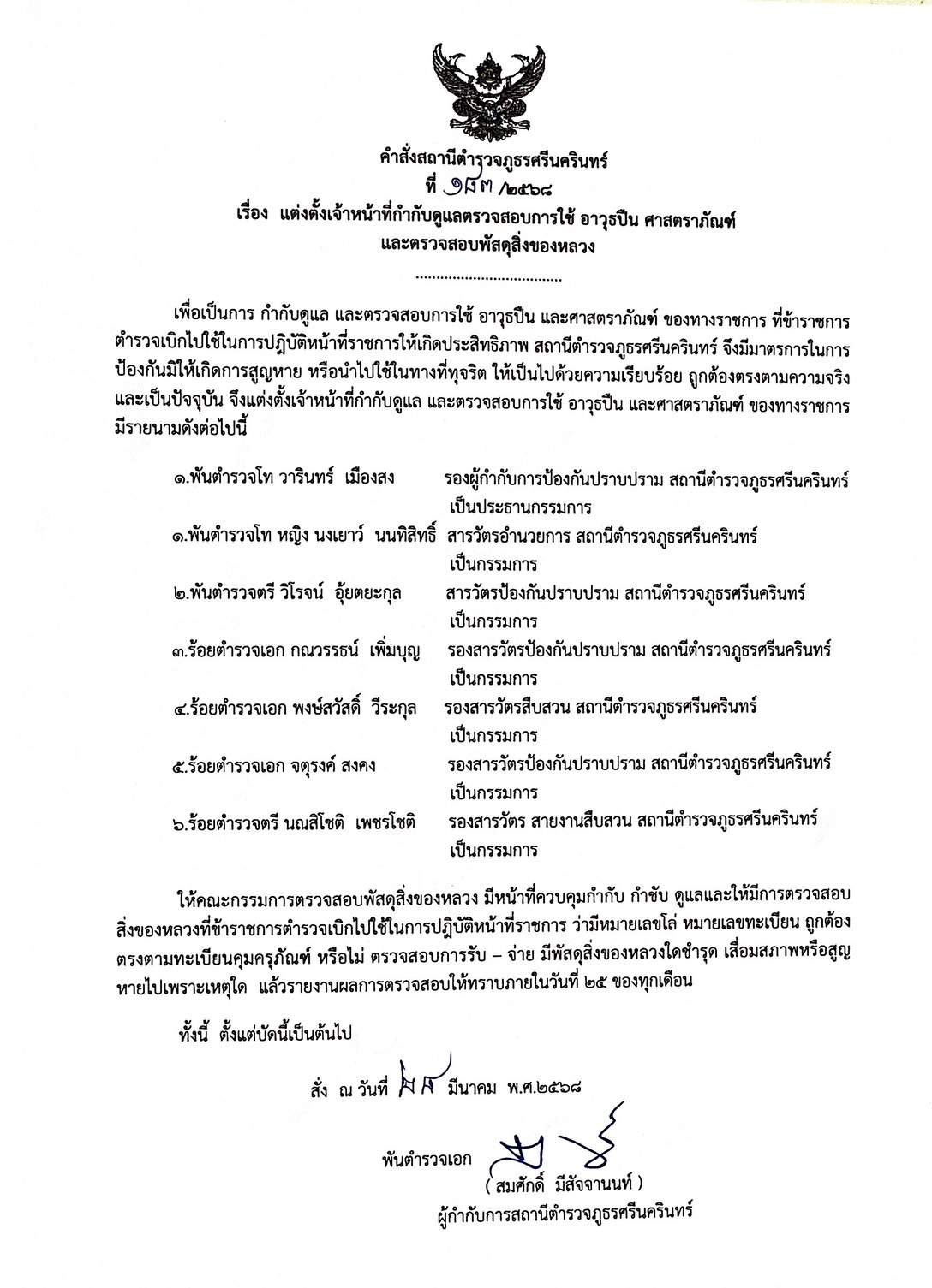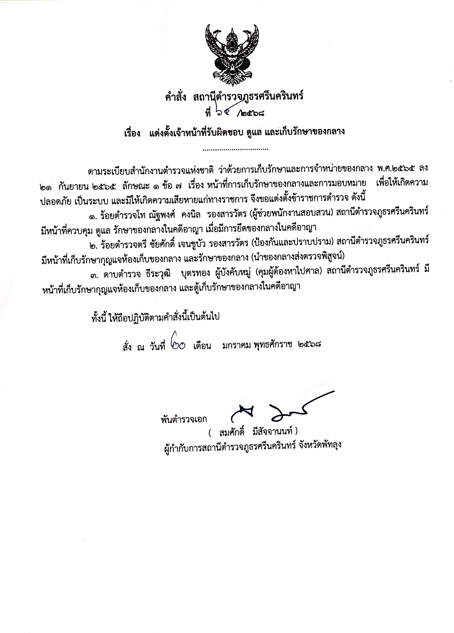 – คำสั่งมอบหมายหน้าที่เกี่ยวกับสิ่งของหลวง