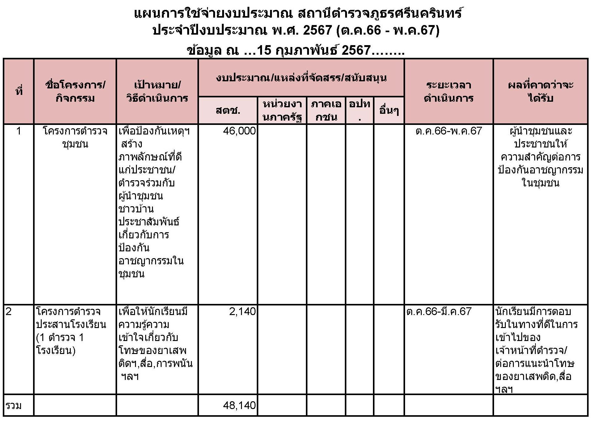 ผนการใช้จ่ายงบประมาณสถานีตำรวจประจำปี
