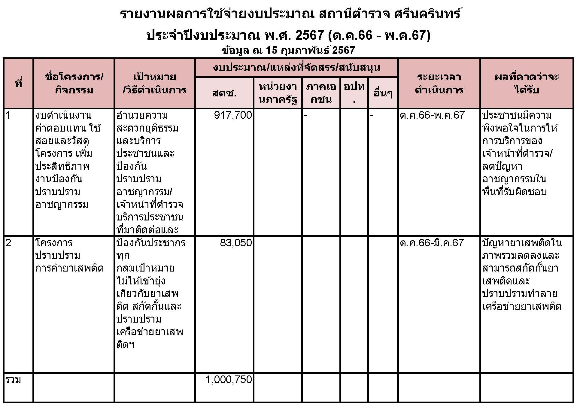รายงานผลการใช้จ่ายงบประมาณสถานีตำรวจประจำปี