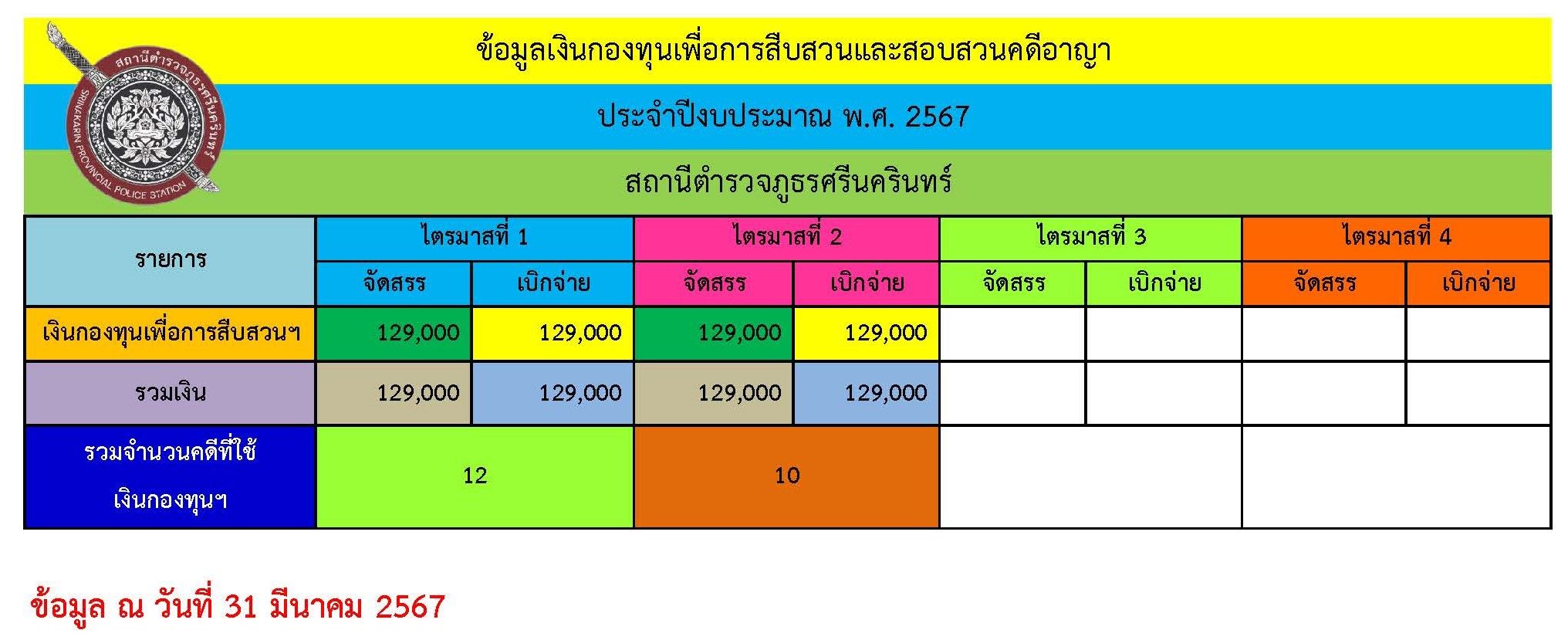 ข้อมูลเงินกองทุนเพื่อการสืบสวนและสอบสวนคดีอาญา