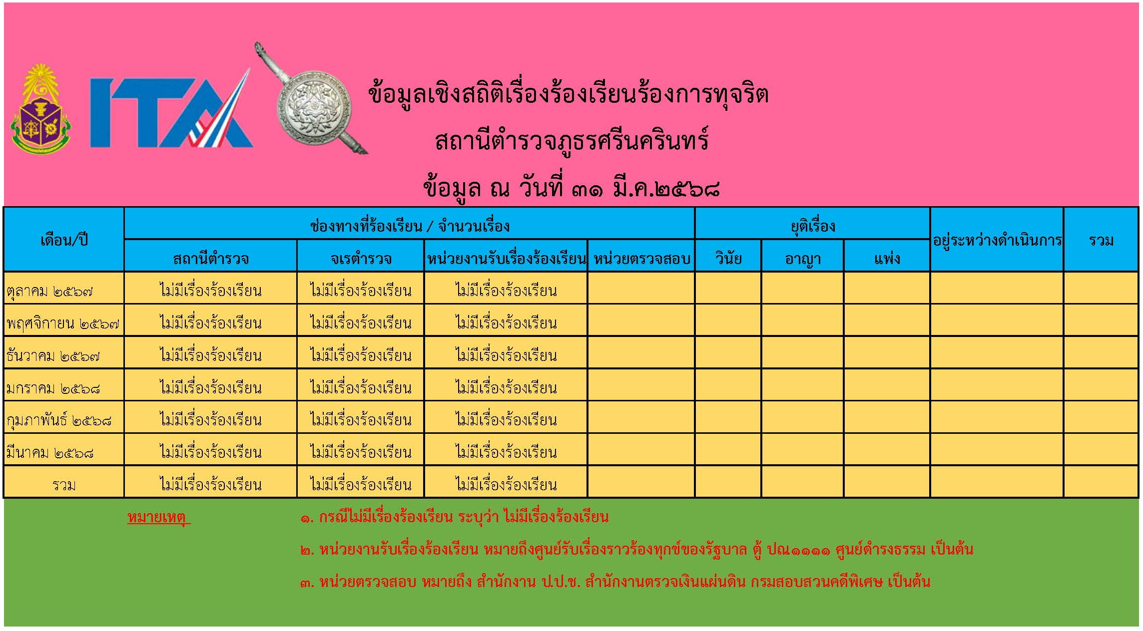 O17 ช่องทางการแจ้งเรื่องร้องเรียน การทุจริตและข้อมูลเชิงสถิติ เรื่องร้องเรียนการทุจริต 2568