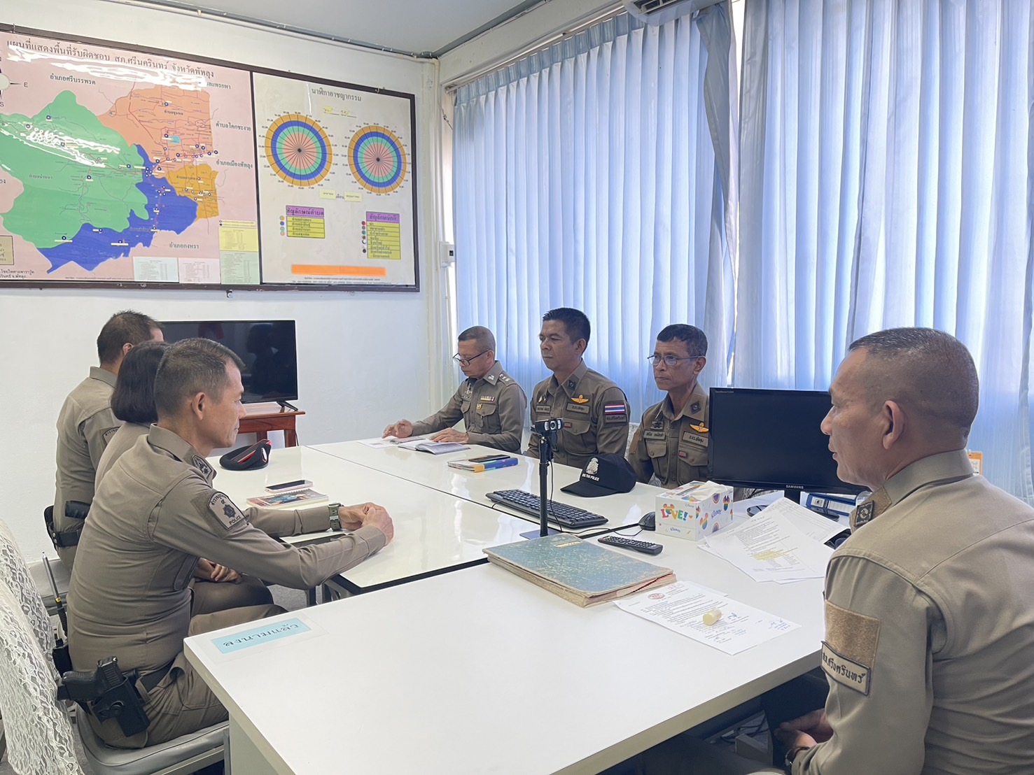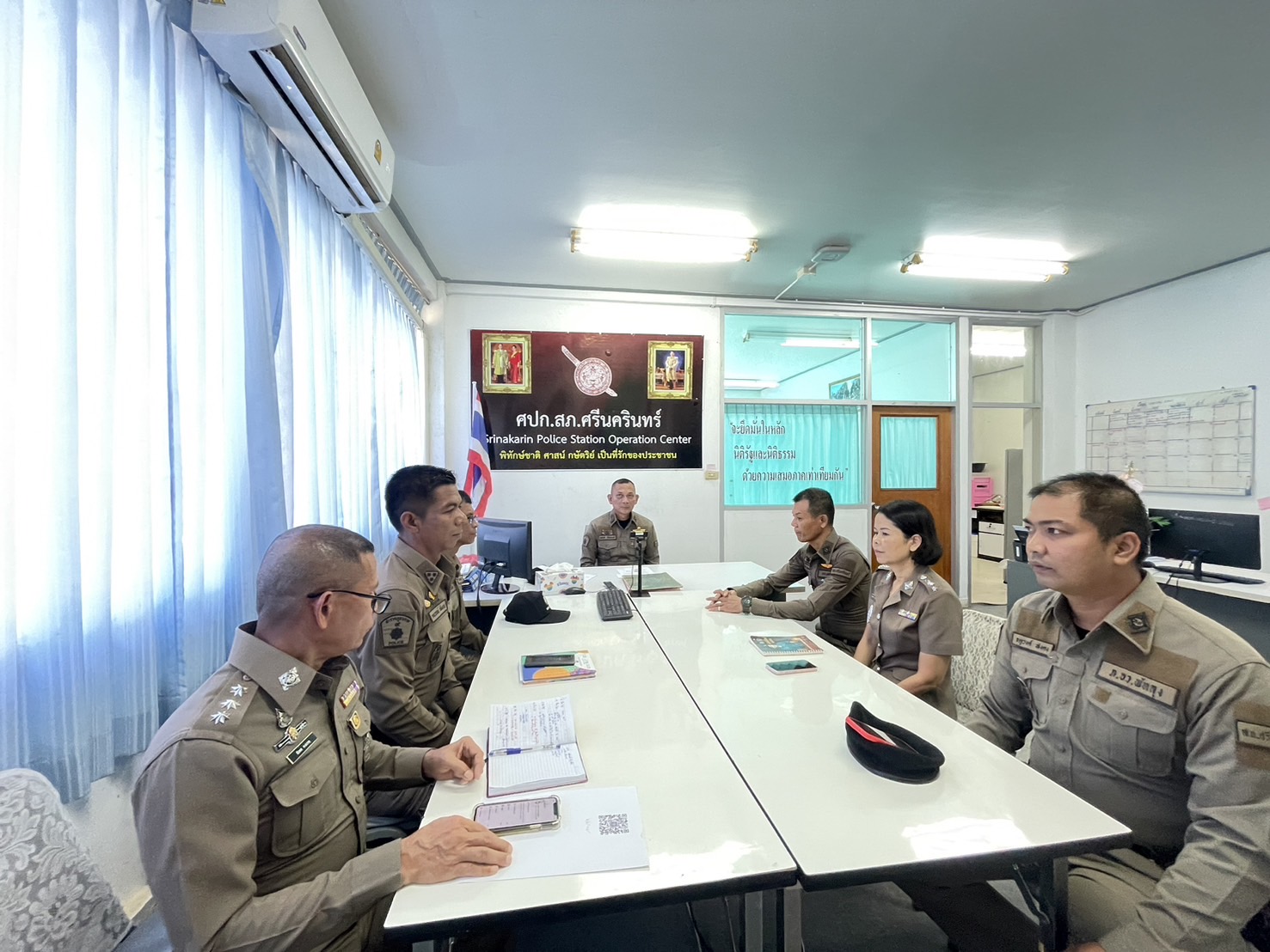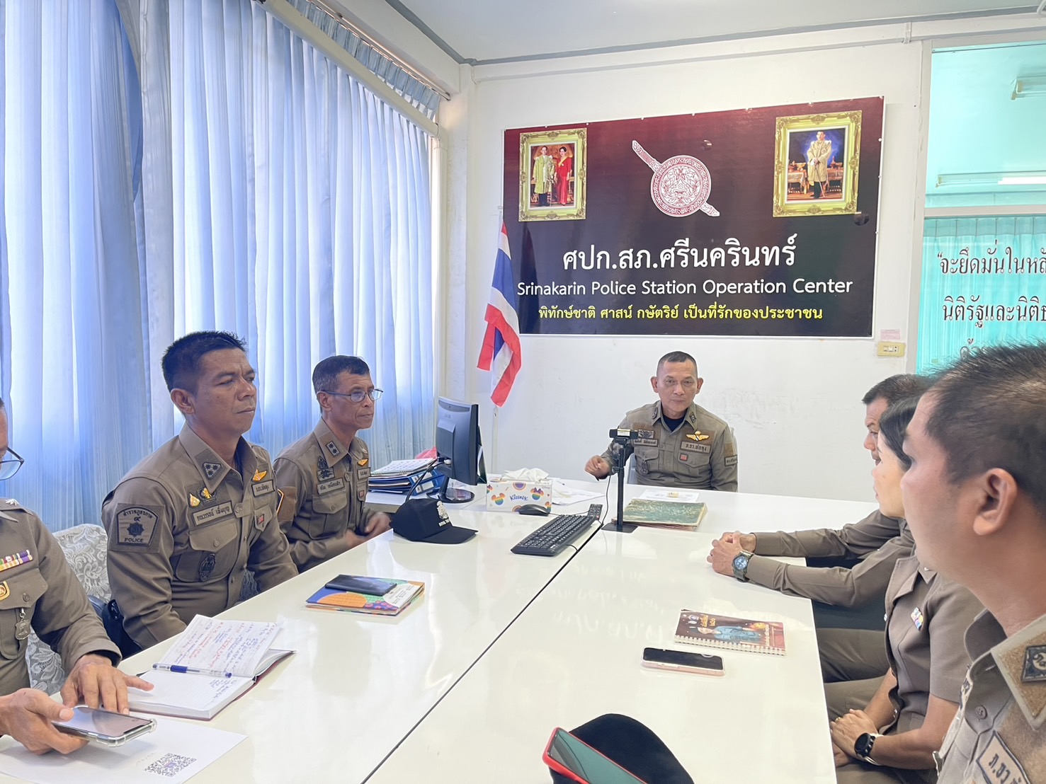เมื่อวันอังคารที่ 21 ม.ค.68 เวลา 09.00 น. พ.ต.อ.สมศักดิ์ มีสัจจานนท์ ผกก.สภ.ศรีนครินทร์ ได้เรียกหัวหน้างานทุกแผนกงาน ( งานสอบสวน, งานสืบสวน, งานป้องกันปราบปราม,งานจราจร,งานอำนวยการ ) กำชับการปฏิบัติหน้าที่ในการปฏิบัติในการทำงานให้ถูกต้อง ยึดกฎหมาย ระเบียบ ข้อบังคับสั่งการ มาใช้ในการปฏิบัติหน้าที่ และกำชับให้หัวหน้างานทุกสายงานให้ไปกำชับข้าราชการตำรวจทุกสายงานห้ามรับสินบนในการปฏิบัติหน้าที่โดยเด็ดขาด