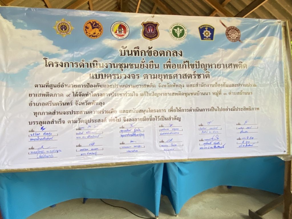 – ร่วมพิธีเปิดโครงการชุมยั่งยืนเพื่อแก้ปัญหายาเสพติดแบบครบวงจร ตามยุทธศาสตร์ชาติประจำปีงบประมาณ 2566 ณ ศาลา ประจำหมู่บ้าน หมู่ที่ 3 ต.บ้านนา อ.ศรีนครินทร์ จว.พัทลุง โดยมี นางสาวรัชนก ศรีหนูสุด ปลัดอำเภอเจ้าพนักงานปกครองชำนาญการพิเศษ เป็นประธานในพิธีเปิด พร้อมทั้งลงนามบันทึกข้อตกลง MOU บันทึกข้อตกลงให้ความร่วมมือ ตามโครงการดำเนินงานชุมชนยั่งยืน เพื่อแก้ไขปัญหายาเสพติดในพื้นที่บ้านนา ม.3 ต.บ้านนา อ.ศรีนครินทร์ จว.พัทลุง ให้บรรลุตามเป้าหมายวัตถุประสงค์ของโครงการต่อไป