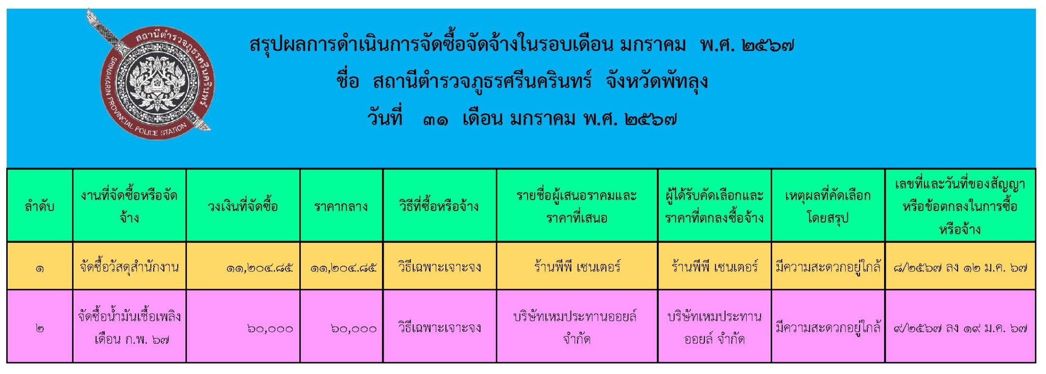 สรุปผลการจัดซื้อจัดจ้าง เดือน มกราคม 2567