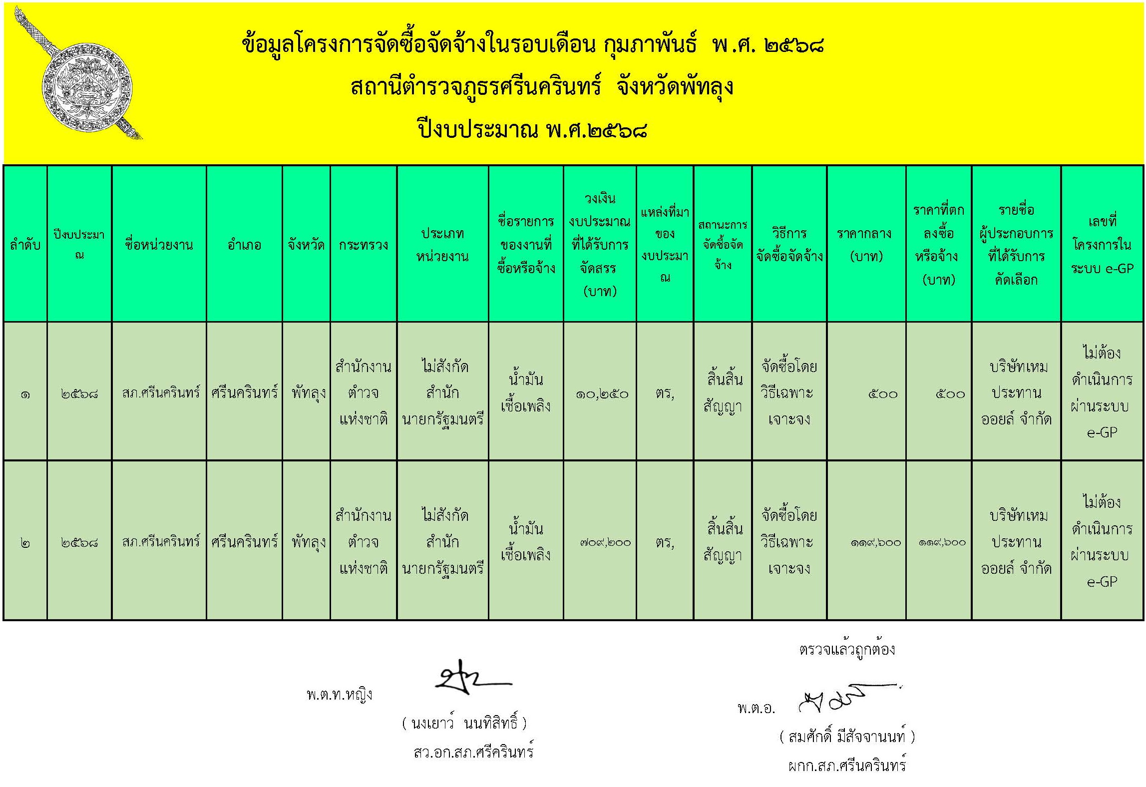 สรุปผลการจัดซื้อจัดจ้าง เดือน กุมภาพันธ์ 2568