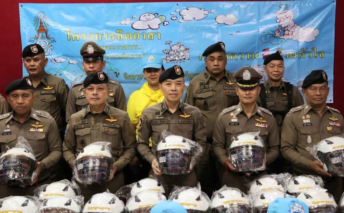 เมื่อ 10 เม.ย.68 ตำรวจพัทลุง โดย พล.ต.ต.เชาวลิต เลี้ยงสุพงศ์ ผบก.ภ.จว.พัทลุงแจกหมวกนิรภัยตามโครงการจิตอาสาจราจร รณรงค์การขับขี่ปลอดภัยสวมหมวกนิรภัย เพื่อลดอุบัติเหตุจราจรทางบก ในช่วงเทศกาลสงกรานต์ 2568 ณ หน้าอาคารที่ทำการ ภ.จว.พัทลุง