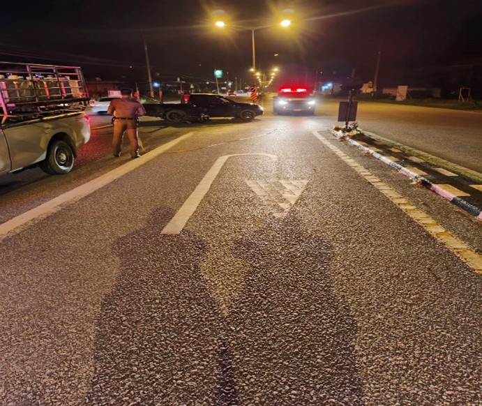 เหตุเกิดบนถนนเพชรเกษม พัทลุง – ตรัง หน้าร้านยูเทอร์นข้าวแกง ม.10 ต.ชุมพล อ.ศรีนครินทร์ จว.พัทลุง เมื่อวันที่ 6 ธ.ค.67 เวลา 20.10 น.