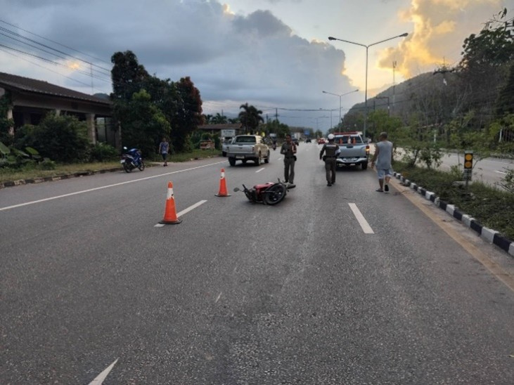 เหตุเกิด บนถนนสายพัทลุง – ตรัง บริิเวณหน้า รพ.ศรีนครินทร์ ม.9 ต.บ้านนา อ.ศรีนครินทร์ จว.พัทลุง เมื่อวันที่ 10 มี.ค.68 เวลาประมาณ 18.00 น.