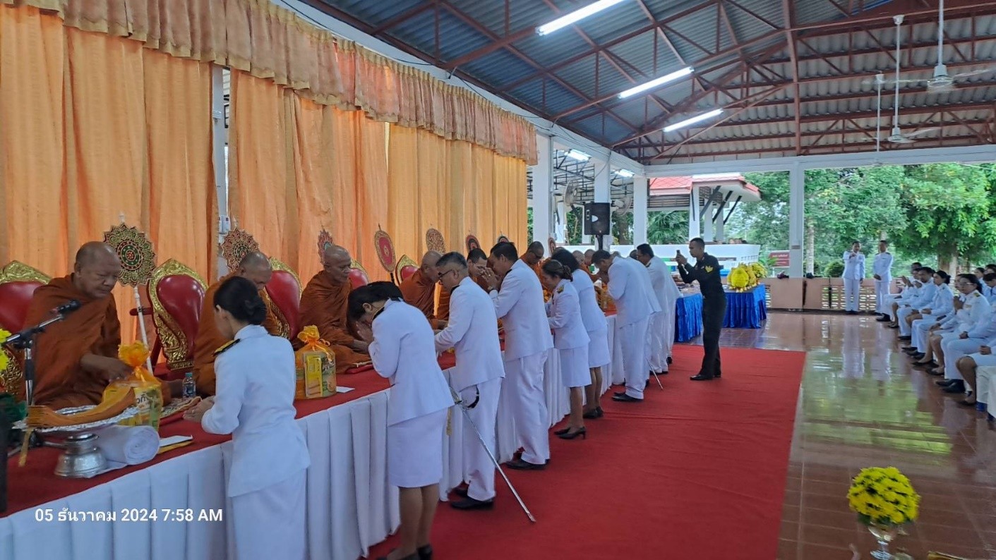เมื่อวันที่ 5 ธ.ค.67 เวลา 07.00 น. พ.ต.อ.สมศักดิ์ มีสัจจานนท์ ผกก.สภ.ศรีนครินทร์ ได้มอบให้ พ.ต.ท.ประกาศ เอียดคล้าย รอง ผกก.สส.สภ.ศรีนครินทร์ พร้อมข้าราชการตำรวจสถานีตำรวจภูธรศรีนครินทร์ ร่วมทำบุญตักบาตรถวายพระราชกุศล ในวันพ่อแห่งชาติ ณ ศาลาประชาคมอำเภอศรีนครินท์