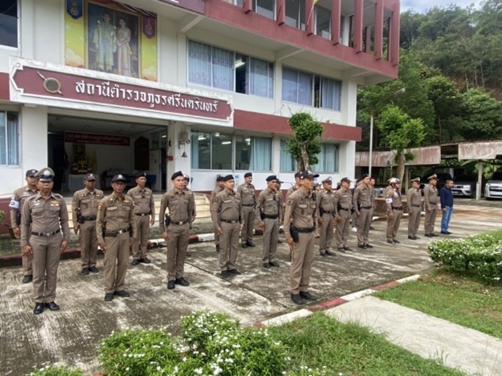 วันจันทร์ ที่ 10 มี.ค.68 เวลา 08.30 น. พ.ต.อ.สมศักดิ์ มีสัจจานนท์ ผกก.สภ.ศรีนครินทร์, พ.ต.ท.ดุนยนิตย์ ชูเชื้อ รอง ผกก.(สอบสวน)ฯ , พ.ต.ท.หญิง นงเยาว์ นนทิสิทธิ์ สว.อก.ฯ , พ.ต.ต.วิโรจน์ อุ้ยตยะกุล สวป., พร้อมข้าราชการตำรวจในสังกัด สภ.ศรีนครินทร์ ร่วมเข้าแถวเคารพธงชาติ กล่าวคำสัตย์ปฏิญาณ อุดมคติตำรวจ , ชี้แจงข้อราชการ ข้อสั่งการ ของผู้บังคับบัญชาให้ ตร.ในสังกัดทราบ และกำชับการแต่งกายให้เรียบร้อย กำชับการปฏิบัติหน้าที่ก่อนออกปฏิบัติหน้านที่