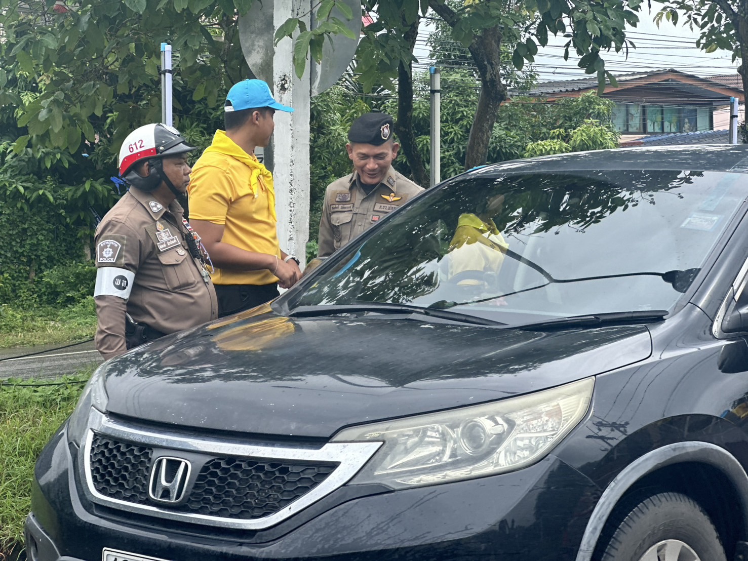 พ.ต.อ.สมศักดิ์ มีสัจจานนท์ ผกก.สภ.ศรีนครินทร์ พร้อมด้วย พ.ต.ท.หญิง นงเยาว์ นนทิสิทธิ์ สว.อก.สภ.ศรีนครินทร์ พร้อม จิตอาสา สภ.ศรีนครินทร์ พร้อมปฏิบัติหน้าที่บริการ ช่วงเทศกาลปีใหม่ 2568