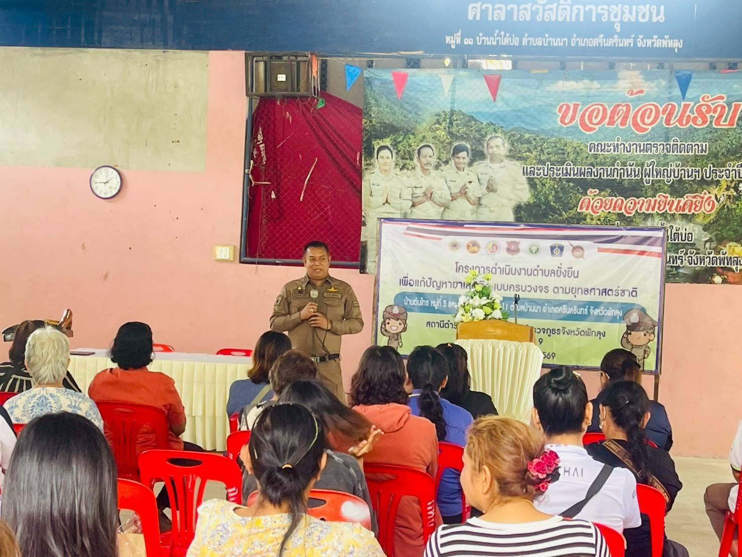 เมื่อวันที่ 11 ก.พ.2569 เวลา 14.00 น.พ.ต.อ.ณัฐภาคย์ นุ้ยโดด ผกก.สภ.ศรีนครินทร์ ,พ.ต.ท.วารินทร์ เมืองสง รอง ผกก.ป.สภ.ศรีนครินทร์, พ.ต.ท.ประกาศ เอียดคล้าย รอง ผกก.สส.สภ.ศรีนครินทร์, พ.ต.ท.วิโรจน์ อุ้ยตยะกุล สวป.สภ.ศรีนครินทร์ , พ.ต.ท.หญิงนงเยาว์ นนทิสิทธิ์ สว.อก.สภ.ศรีนครินทร์ พร้อมด้วย ชุดปฏิบัติการตำบลยั่งยืน ข้าราชการตำรวจ สภ.ศรีนครินทร์ ร่วมพิธีเปิดโครงการดำเนินงานตำบลยั่งยืน เพื่อแก้ไขปัญหายาเสพติดแบบครบวงจร ตามยุทธศาสตร์ชาติ ประจำปีงบประมาณ 2569 โดยมี จนท.ฝ่ายปกครอง , นายกเทศมนตรีตำบลบ้านนา ,จนท.สาธารณสุขอำเภอ, จนท.รพ.ศรีนครินทร์ , กำนัน ต.บ้านนา , ผู้ใหญ่บ้าน ประธาน อสม. และประชาชนบ้านต้นไทร ม.5 , บ้านนน้ำใต้บ่อ ม.11 ต.บ้านนา อ.ศรีนครินทร์ จว.พัทลุง โดยมี นายอดุลย์ หมื่นลึก นายอำเภอศรีนครินทร์ เป็นประธานในพิธีเปิดโครงการฯ พร้อมทั้งร่วมลงนามบันทึกข้อตกลง MOU ณ ศาลาหมูาบ้านน้ำใต้บ่อ ม.11 ต.บ้านนา อ.ศรีนครินทร์ จว.พัทลุง