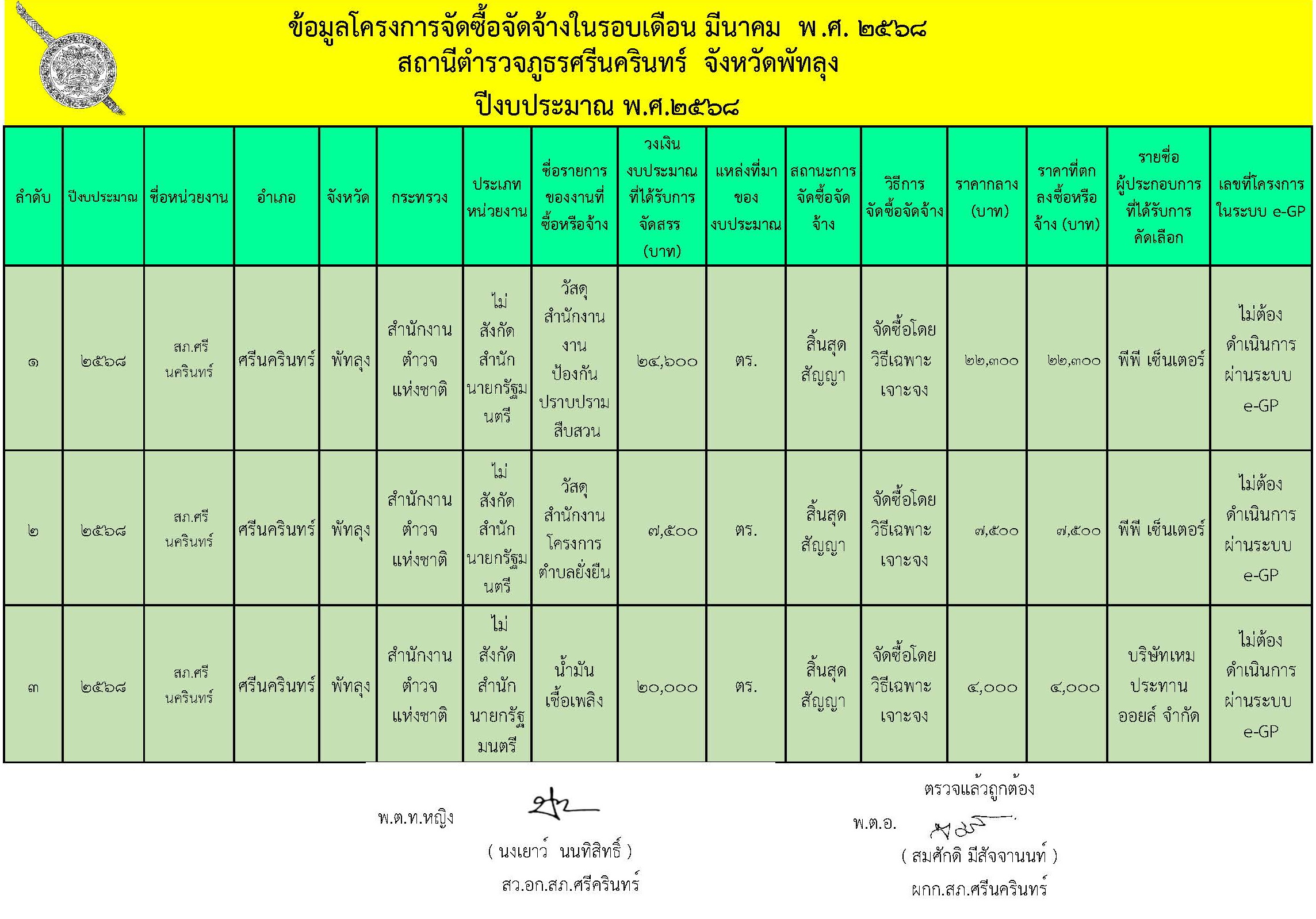 สรุปผลการจัดซื้อจัดจ้าง เดือน มีนาคม 2568