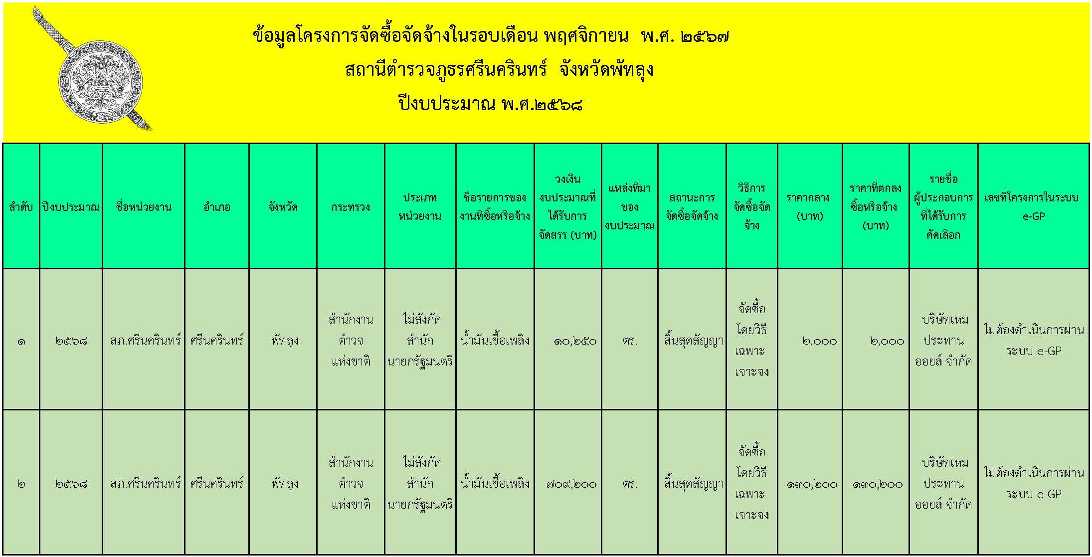 สรุปผลการจัดซื้อจัดจ้าง เดือน พฤศจิกายน 2567