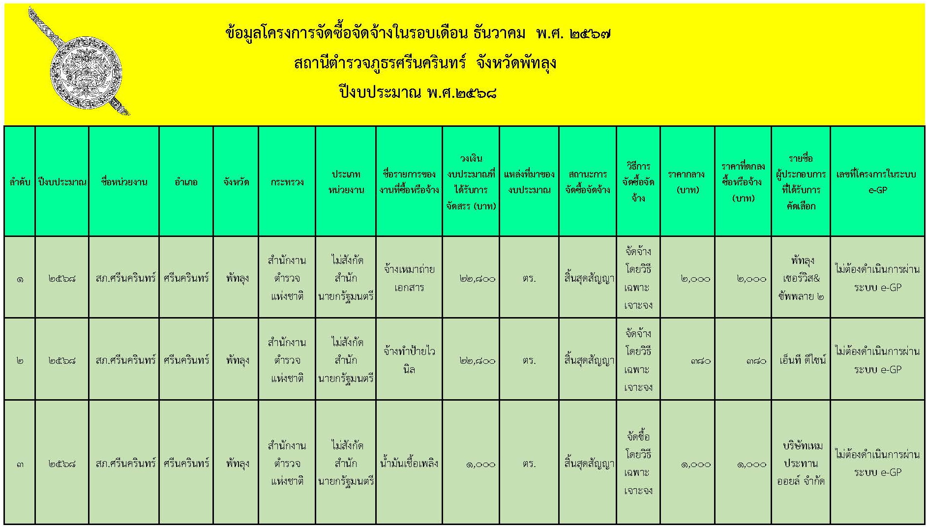 สรุปผลการจัดซื้อจัดจ้าง เดือน ธันวาคม 2567