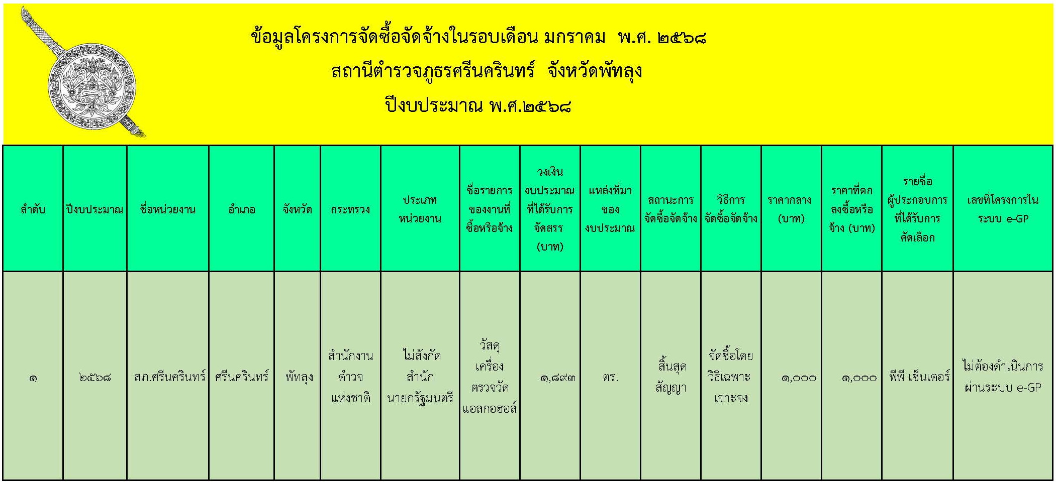 สรุปผลการจัดซื้อจัดจ้าง เดือน มกราคม 2568