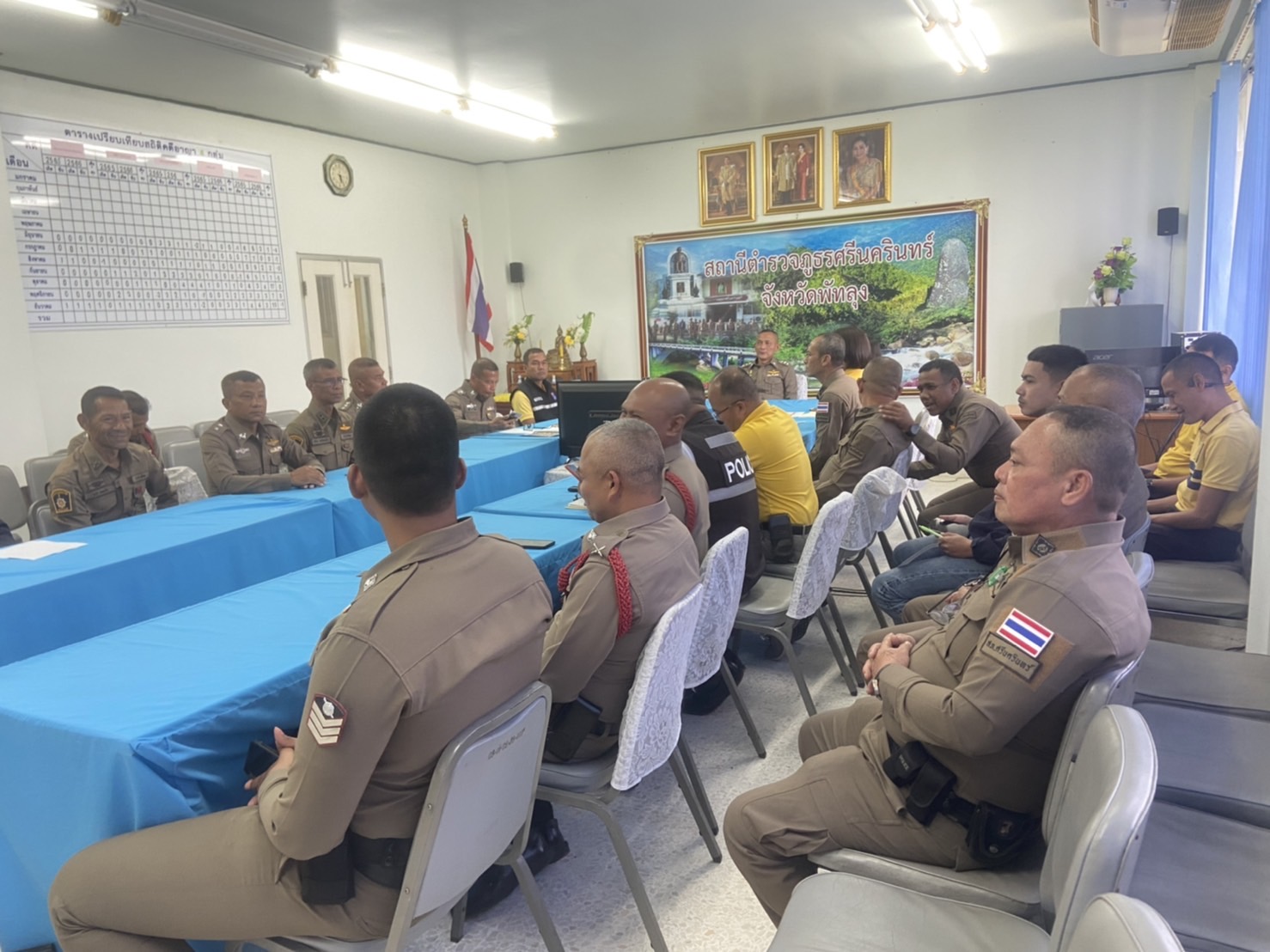 เมื่อวันอังคารที่ 13 ม.ค.68 เวลา 09.00 น. พ.ต.อ.สมศักดิ์ มีสัจจานนท์ ผกก.สภ.ศรีนครินทร์ ให้ข้าราชการตำรวจในสังกัดทุกนายเข้าร่วมประชุมฯ เพื่อชี้แจงข้อราชการ นโยบาย ข้อสั่งการของผู้บังคับบัญชาให้ข้าราชการตำรวจทุกนายทราบ และถือปฏิบัติโดยเคร่งครัด และได้ให้ความรู้ความเข้าใจแก่เจ้าหน้าที่ในการจัดการทรัพย์สินของราชการ ของบริจาค และการจัดเก็บของกลาง เพื่อป้องกันการทุจริตภายในหน่วยงาน โดยให้ทุกนายนำแนวทางดังกล่าวไปปฏิบัติ อย่าให้ข้อบกพร่องเป็นอันขาด
